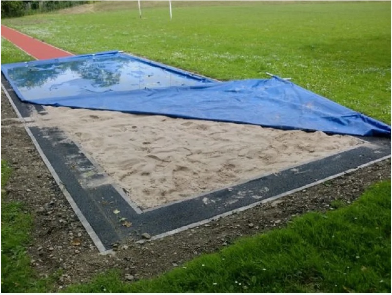 Предназначен для защиты ямы с песком (места приземления при прыжках в длину и тройном прыжке) от мусора водопроницаемый, но при этом защищает яму с песком от попадания листьев и гравия